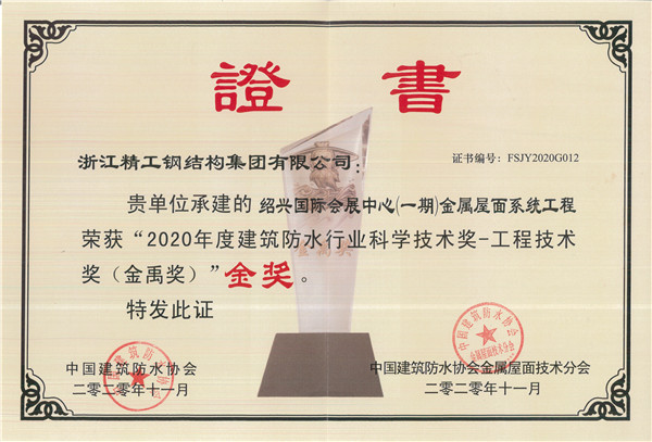 绍兴国际会展中心一期B区项目荣获两项国家适用新型专利和一项省级手艺效果判断