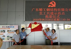 为深入贯彻党的十九大精神,,,周全落实群团组织刷新,,,增强培育非公有制党工事情典范,,,抓好党工共建事情树模点建设活动。。。。在中国共产党建党九十七周年来临之际,,,广东省佛山市三水戋戋委组织部、区总工会配合举行建设“党工共建树模点”活动。。。。各级党组织、工会通过层层推荐、实地考察、综合评审,,,建设爆发了三水区2018年度十个企业“党工共建树模点”,,,其中,,,广东918博天堂钢结构有限公司(以下简称广东918博天堂)乐成获评“党工共建树模点”